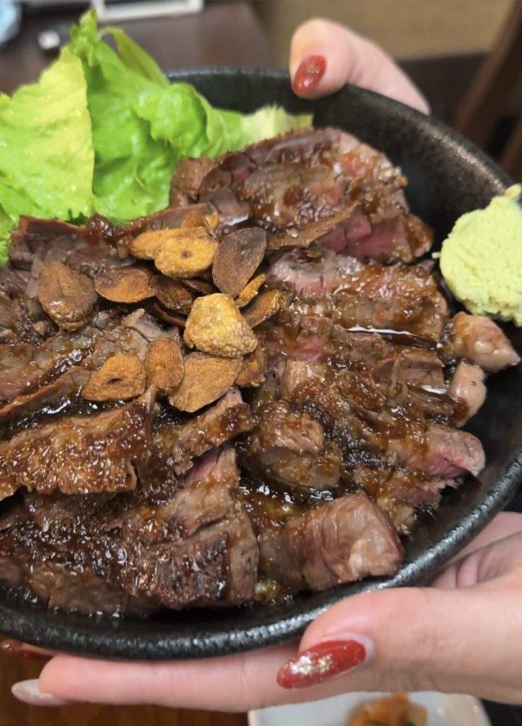 鮪と肉の二刀流のお店やで。